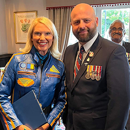 Darrel Gregory (SAMA scarf), Allan Olliver (RTR Beret), John Gilmour (RAF Beret next to Allan), Colin Lee (Red Beret REME), Chris Curtis (RAF Beret and full beard), Ken Clasper (Royal Navy), Terry Hennessey (Royal Navy and dark glasses)